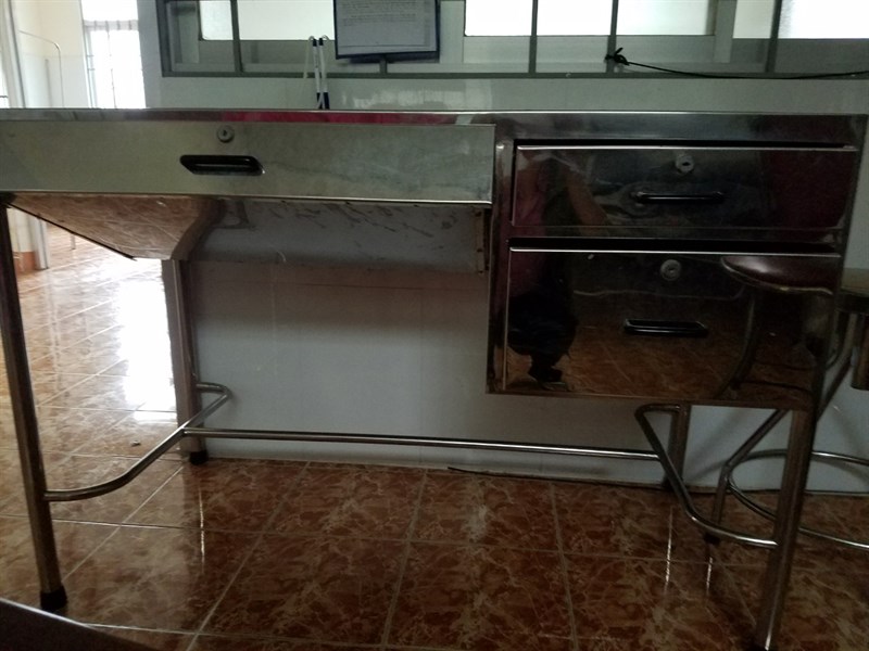 - Mặt bàn bằng inox tấm đánh sọc Hairline, dày 0.8 mm