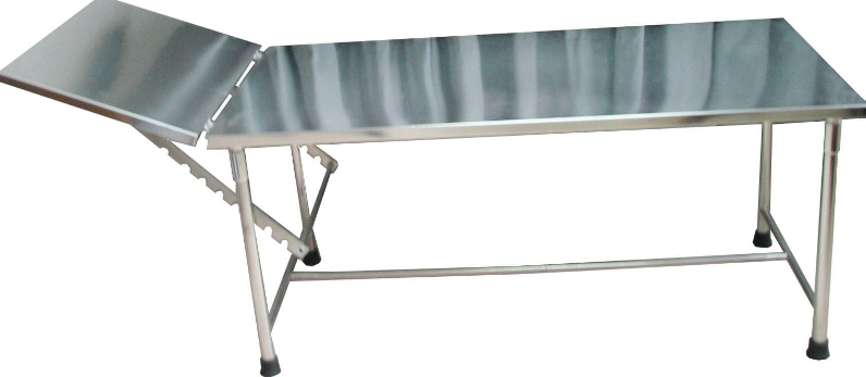- Mặt bàn làm bằng inox tấm dày 0.8mm gồm phần lưng 1400mm và phần đầu dài 400mm bên dưới có xương chịu lực