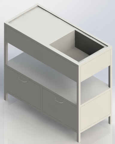 Bên dưới có 2 ngăn kéo, cách mặt đất 100 mm, kích thước: 462x275 (dài x cao)